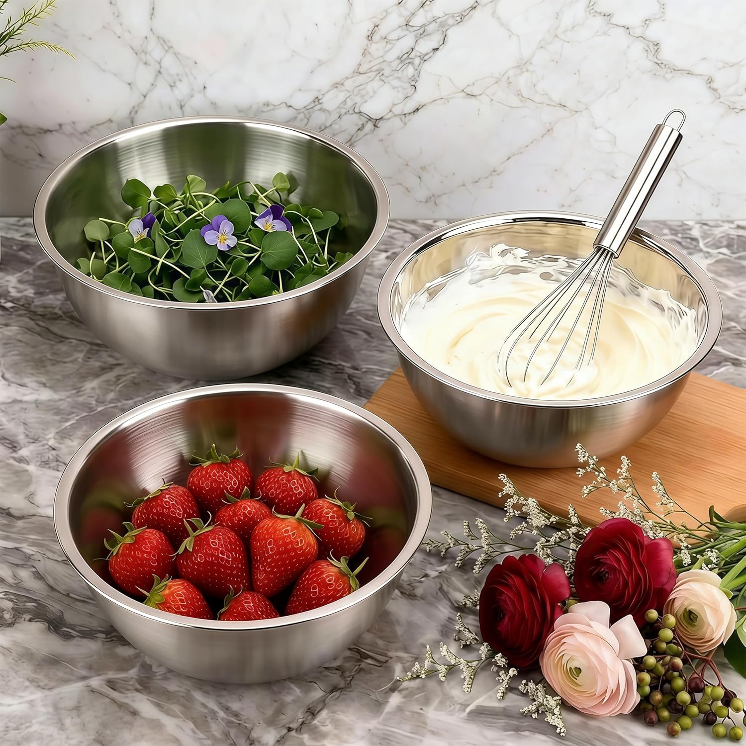 | Included Components | 12 x Stainless steels mixing bowls |