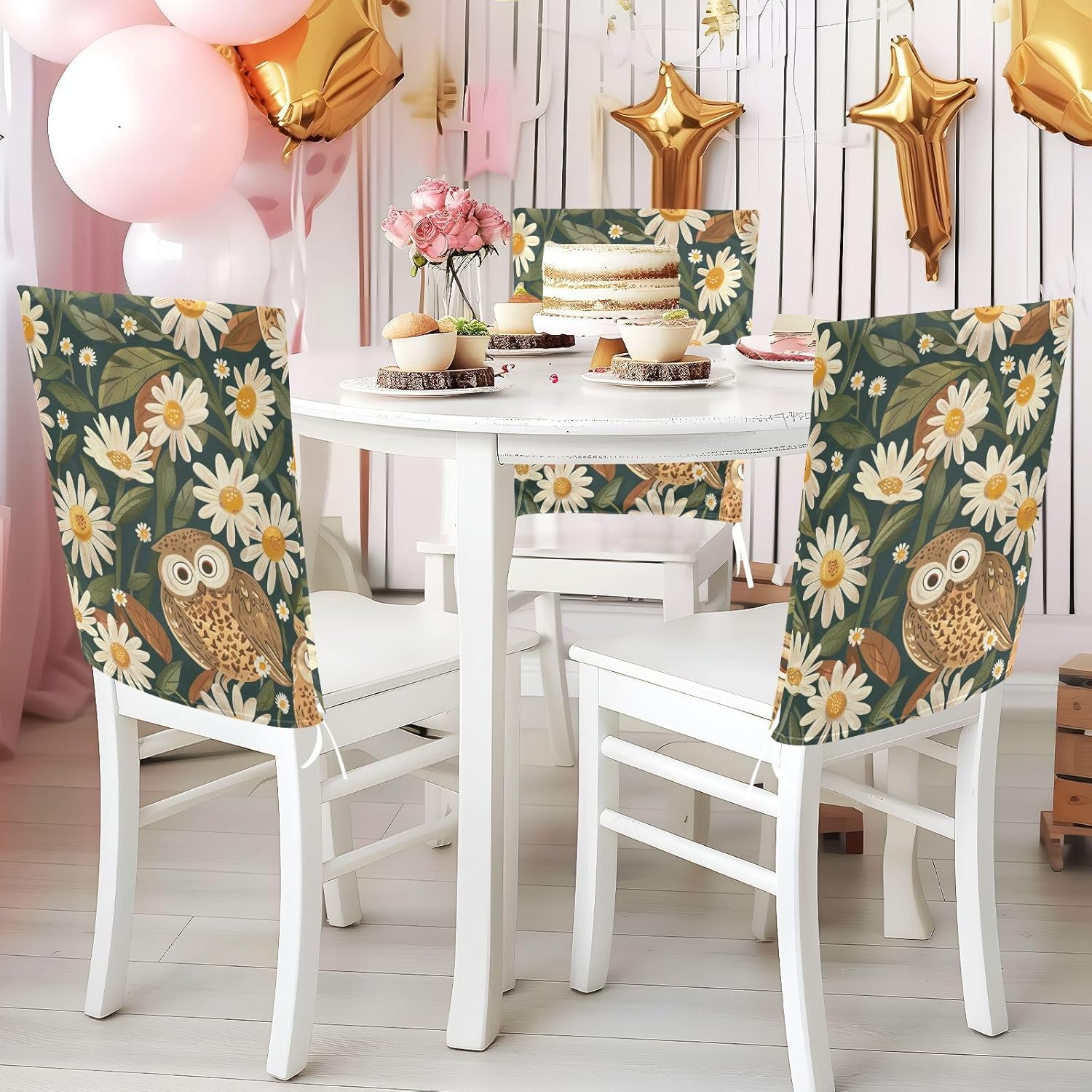 ALAZA Owl Daisy Flowers Chair Back Cover Set of 6, Washable Reusable Removable Chair Slipcovers Decorative Chair Cover for Home Kitchen Wedding Party