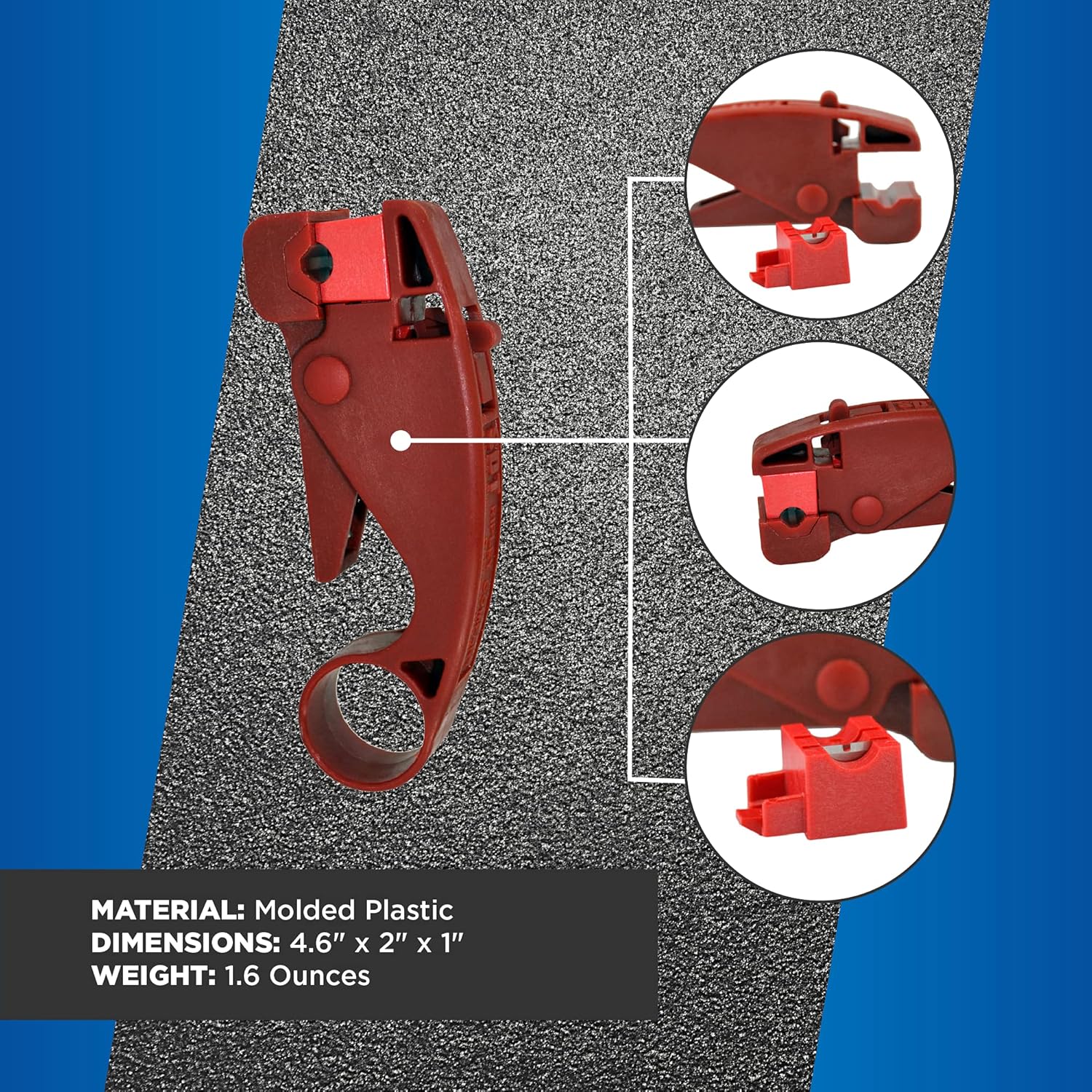 • WIRE-STRIPPER TOOL: Our cable jacket cutter is constructed from impact-resistant polymer. The color-coded blade cassettes are built from high-quality steel and can perform over 3,500 preparations. The tool’s unique assembly includes a cassette ejector for easy use.