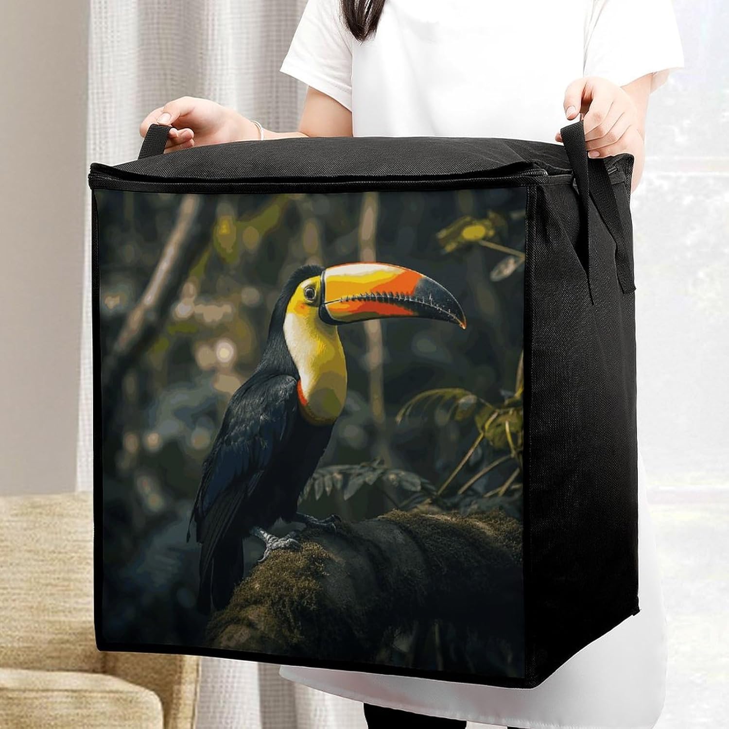 The Colorful Toucan printed Large quilt storage bag fit easily into closets or shelves, and are powerful enough to hold your daily items, protecting your stored items from moisture, dust and damage, keeping them fresh and clean Bedroom storage bags can also be used to store seasonal and Christmas decorations, making them a suitable Christmas gift for family and friends