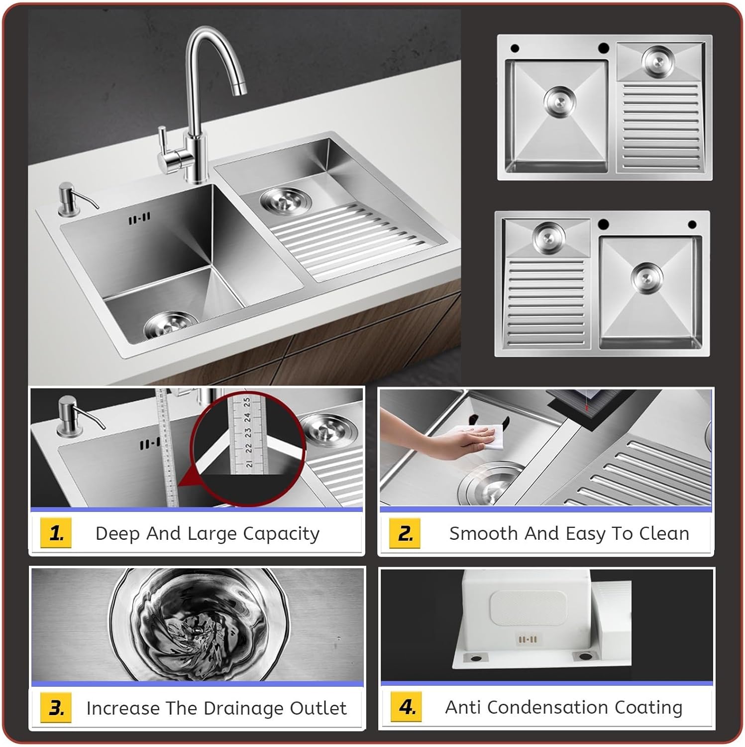🧺 Features1. Integrated washboard for easy cleaning.2. High quality stainless steel, sturdy and durable.3. A complete set of drainage accessories, tight connection and rapid drainage.4. Multi lengths are available, choose the appropriate size according to your needs.5. There are left and right washboards to choose from, choose according to your usage habits.🧺 Set includes: laundry sink, 2 drainer, drain pipe, hot and cold angle valve🧺 Product information--Product name: Laundry sink--Color: silver--Product material: stainless steel🧺 Size:60×48×22 cm / 23.6×18.9×8.6 inches70×48×22 cm / 27.5×18.9×8.6 inches80×48×22 cm / 31.5×18.9×8.6 inches90×48×22 cm / 35.4×18.9×8.6 inches100×48×22 cm / 39.3×18.9×8.6 inches110×48×22 cm / 43.3×18.9×8.6 inches120×48×22 cm / 47.2×18.9×8.6 inches