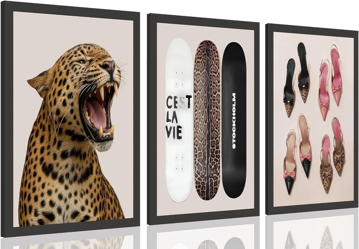 | Color | Black and white leopard print |